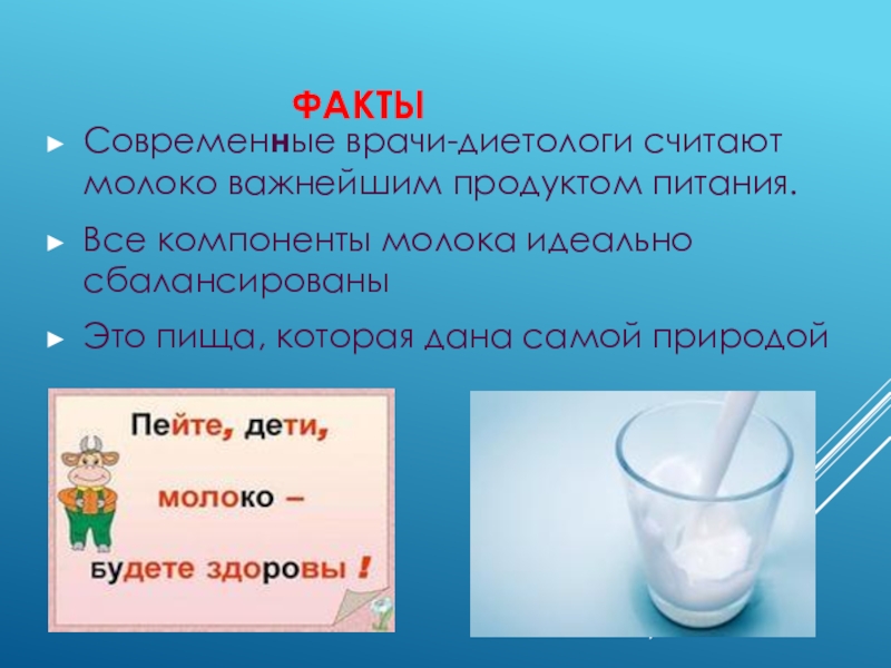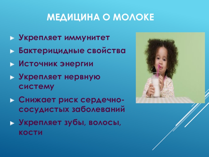 Слайд 8МЕДИЦИНА О МОЛОКЕ