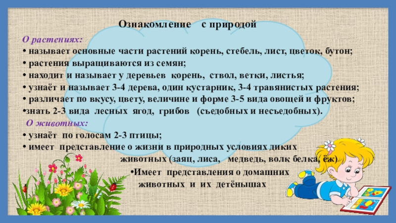 Называет диких и домашних животных, одежду, обувь, мебель, посуду, деревья и т.д.
