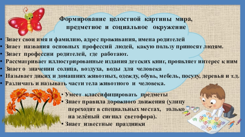 Знает свои имя и фамилию, адрес проживания, имена родителей