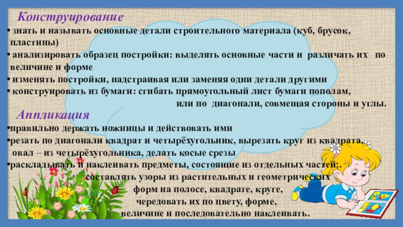 знать и называть основные детали строительного материала (куб, брусок, пластины)