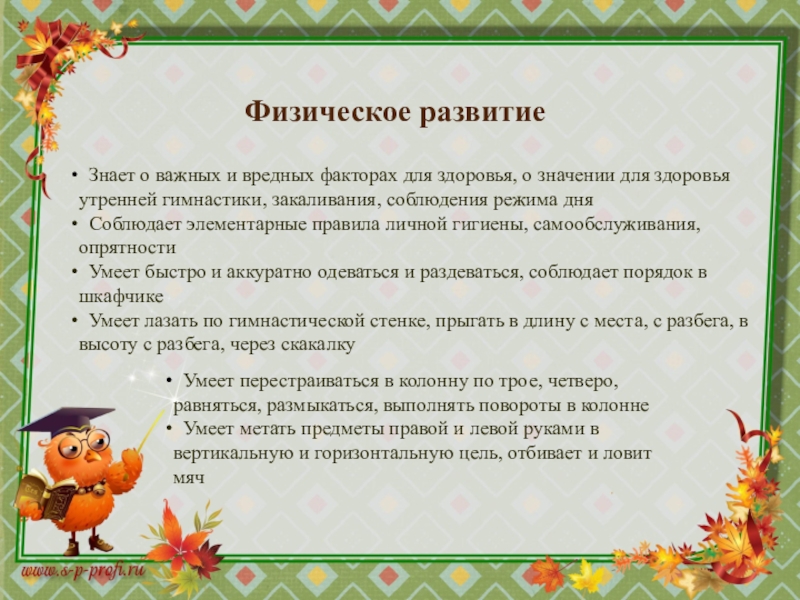 Умеет метать предметы правой и левой руками в вертикальную и горизонтальную цель, отбивает и ловит мяч