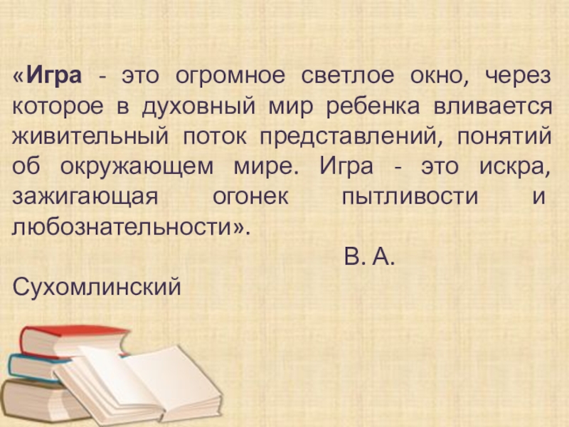 Слайд 2«Игра - это огромное светлое окно, через которое в духовный мир