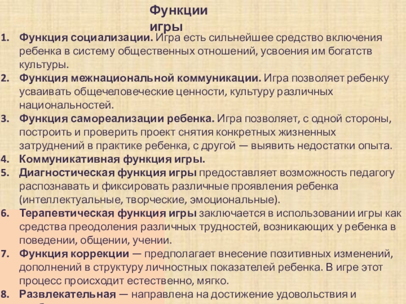 Функция межнациональной коммуникации. Игра позволяет ребенку усваивать общечеловеческие ценности, культуру различных национальностей.