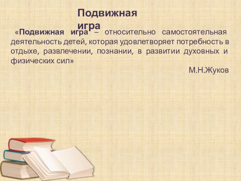 «Подвижная игра – относительно самостоятельная деятельность детей, которая удовлетворяет