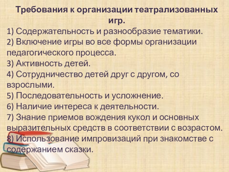 7) Знание приемов вождения кукол и основных выразительных средств в соответствии с возрастом.