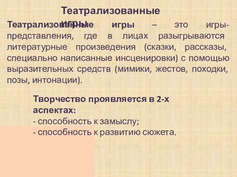 Театрализованные игры – это игры-представления, где в лицах разыгрываются литературные