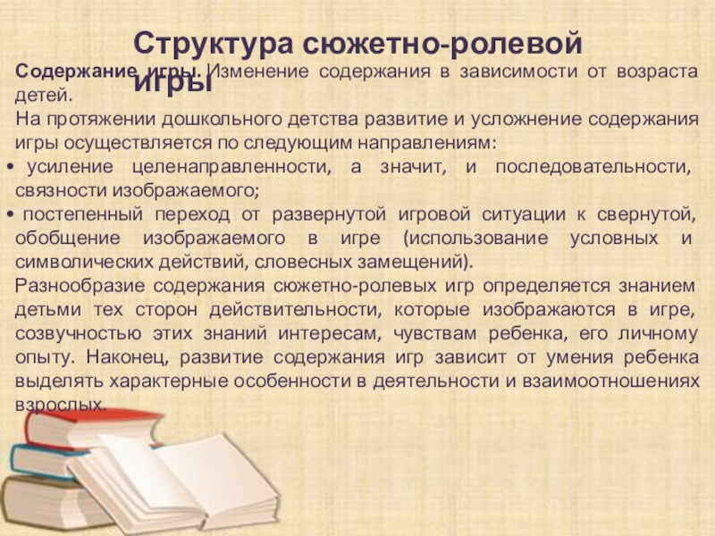 Содержание игры. Изменение содержания в зависимости от возраста детей.