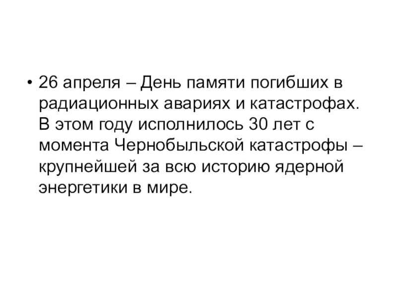 26 апреля – День памяти погибших в радиационных авариях и катастрофах.