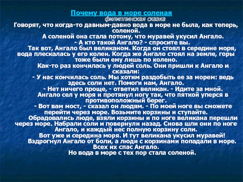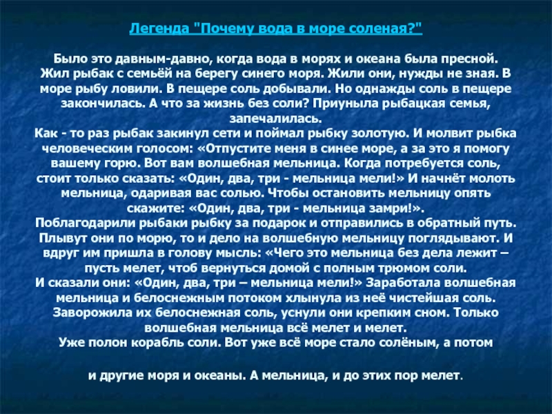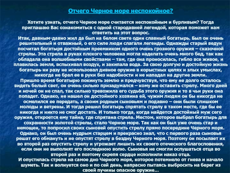 Слайд 14Сказка «Почему море Чёрное»