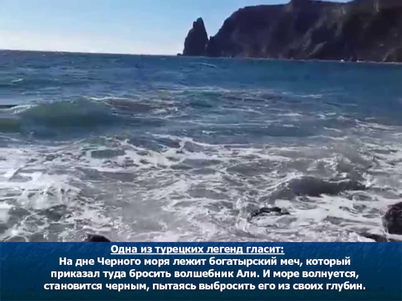 На дне Черного моря лежит богатырский меч, который приказал туда бросить волшебник Али. И море волнуется, становится черным, пытаясь выбросить его из своих глубин.