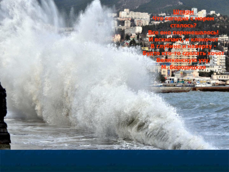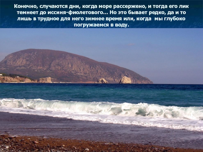 Слайд 43Конечно, случаются дни, когда море рассержено, и тогда его лик темнеет