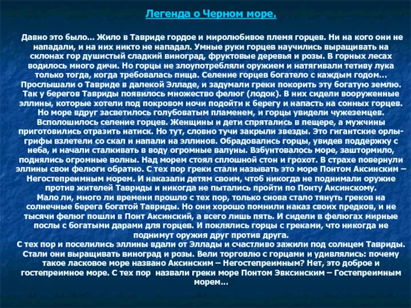 Слайд 11Легенда о Черном море.