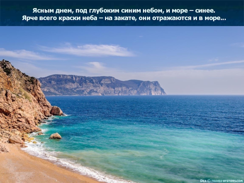 море надолго запоминается своей сочной синевой, переходящей в светлые бирюзовые тона с приближением к берегу…