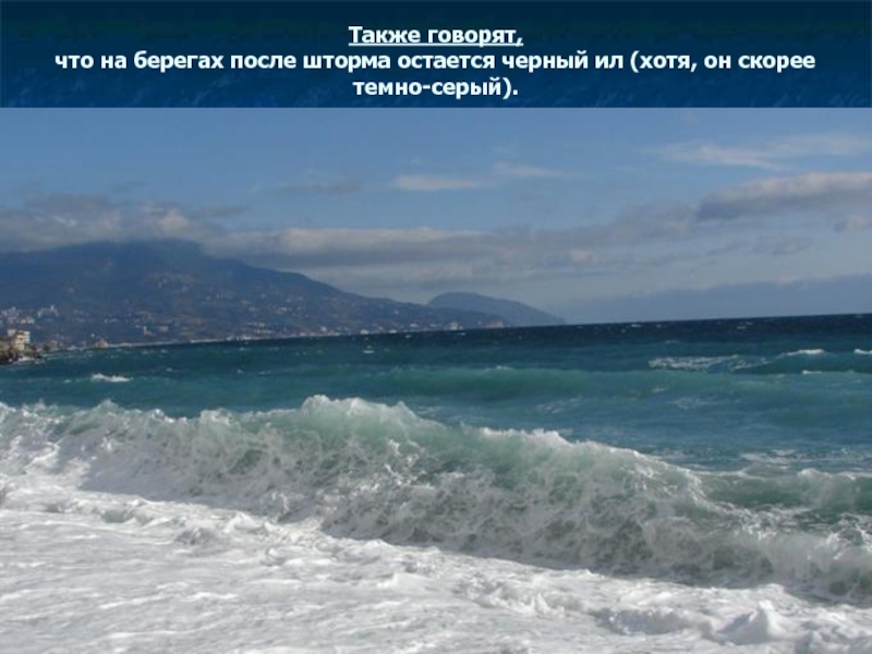 что на берегах после шторма остается черный ил (хотя, он скорее темно-серый).
