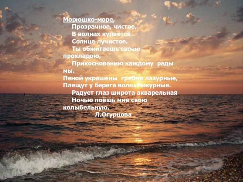 Твой гул в вечерние часы, - Так пишет о нашем Черном море А.С.Пушкин.