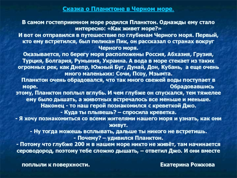 Слайд 8Сказка о Планктоне в Черном море.