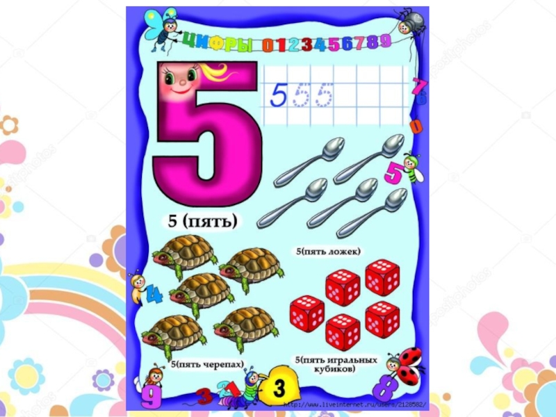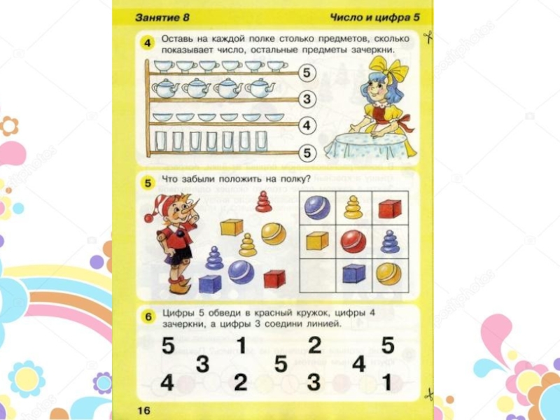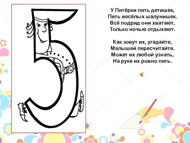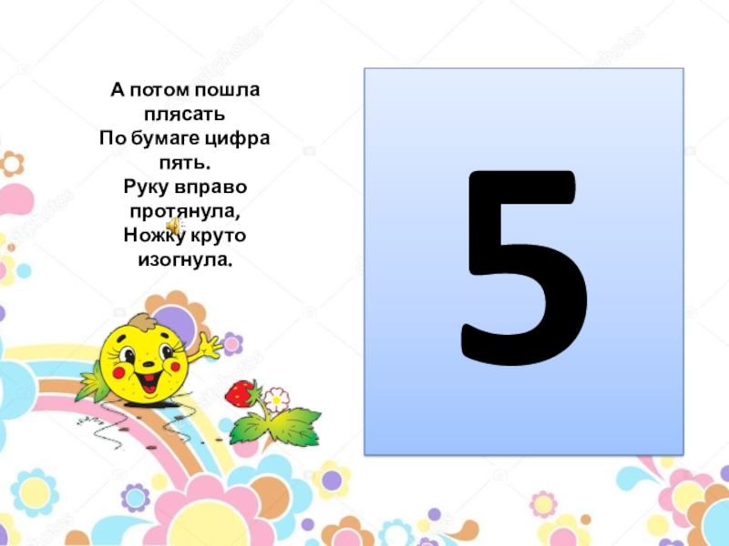 А потом пошла плясать По бумаге цифра пять. Руку вправо протянула, Ножку круто изогнула.5