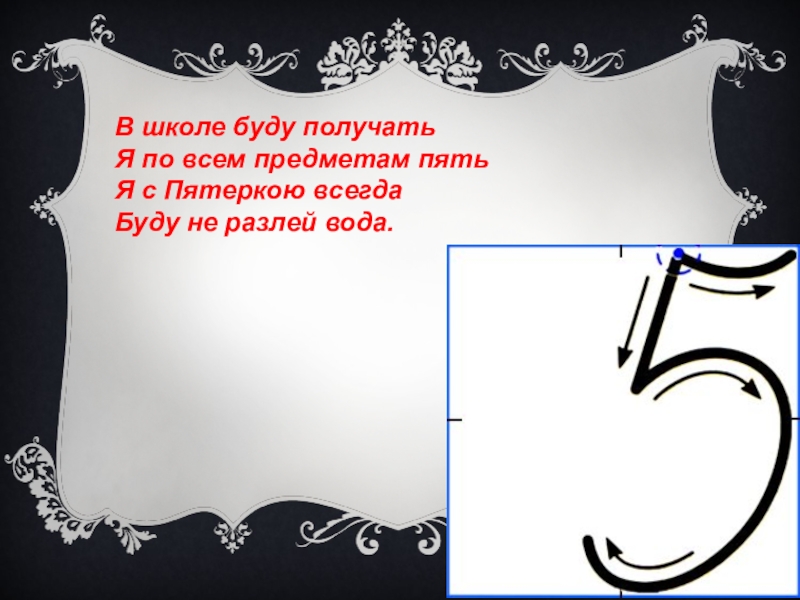 В школе буду получатьЯ по всем предметам пятьЯ с Пятеркою всегдаБуду не разлей вода.