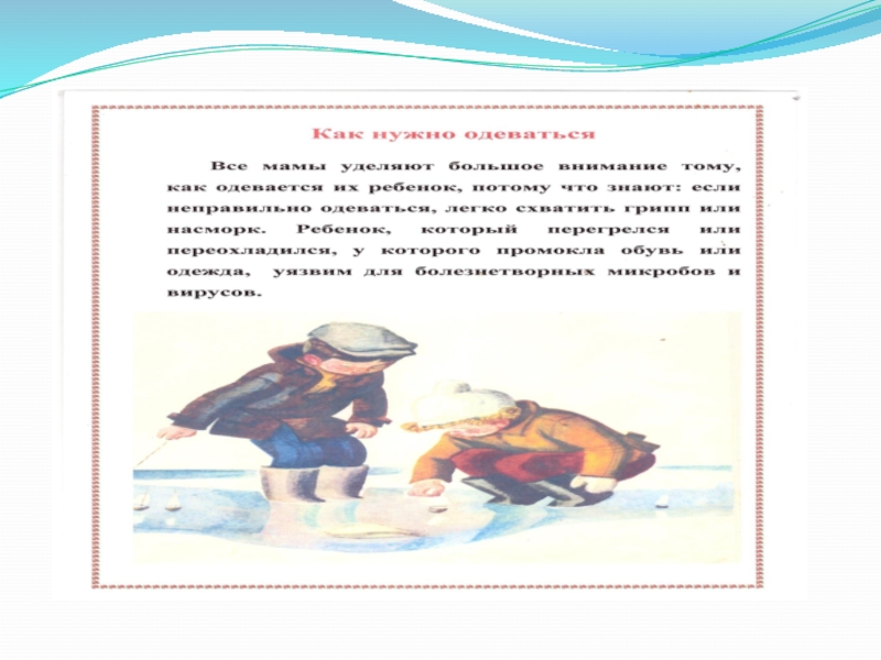 зарядку.     Утром умывайся, чисть зубы, мой уши и шею.     Приучайся обтираться после зарядки до пояса водой комнатной температуры.     Всегда мой руки перед едой, после прогулки, после работы и после посещения туалета.