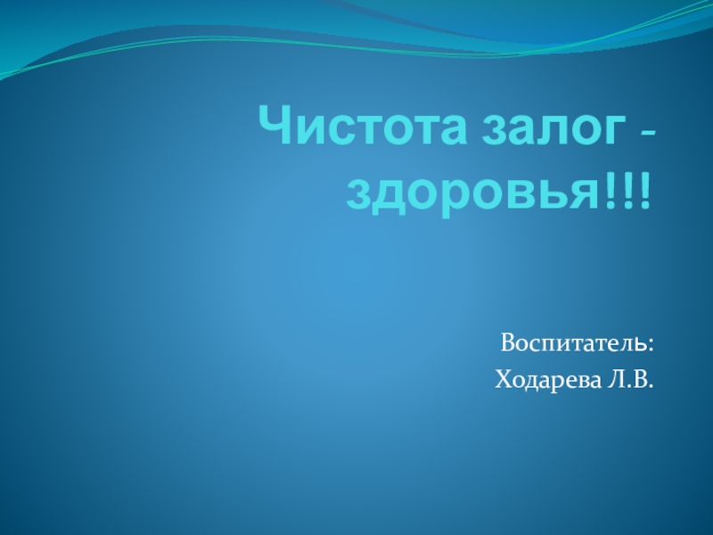 Чистота залог - здоровья!!!Воспитатель:Ходарева Л.В.