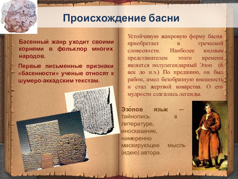 Первые письменные признаки «басенности» ученые относят к шумеро-аккадским текстам.