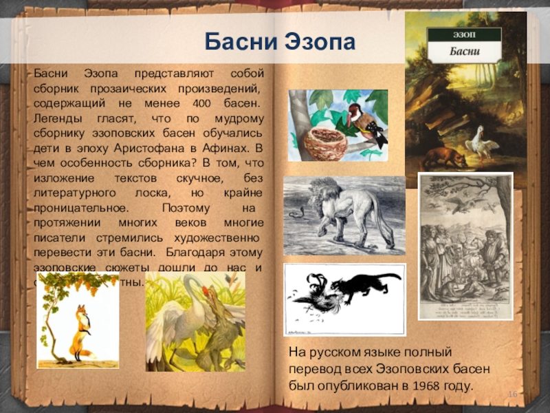 На русском языке полный перевод всех Эзоповских басен был опубликован в 1968 году.
