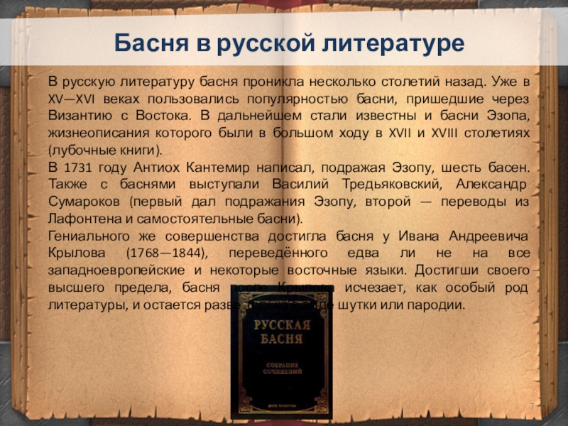 Басенный жанр уходит своими корнями в фольклор многих народов.