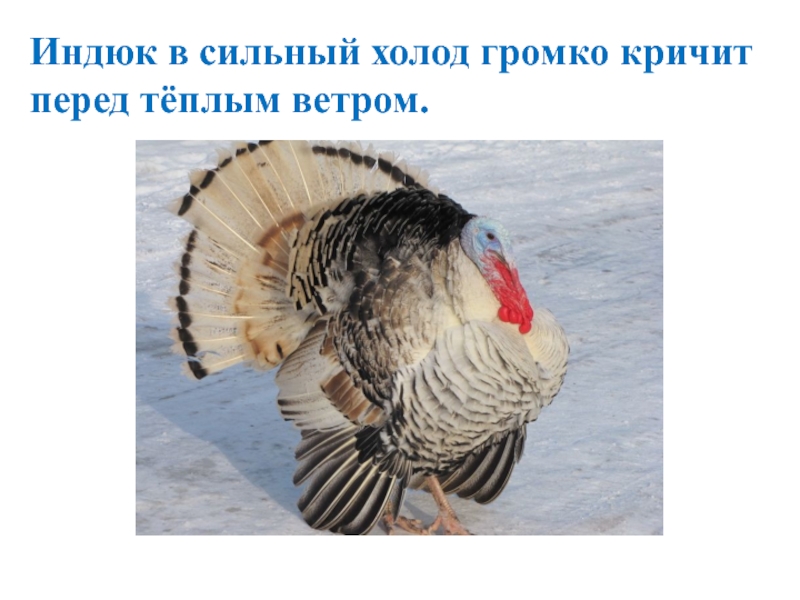 Слайд 6Индюк в сильный холод громко кричит перед тёплым ветром.