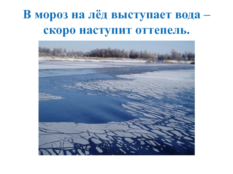 Слайд 7В мороз на лёд выступает вода – скоро наступит оттепель.