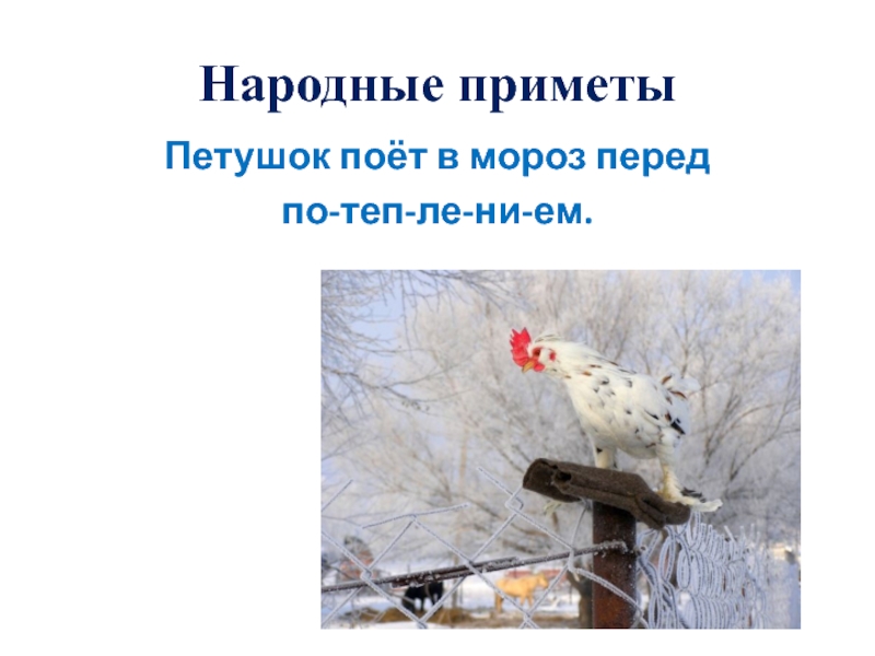 Народные приметыПетушок поёт в мороз перед по-теп-ле-ни-ем.