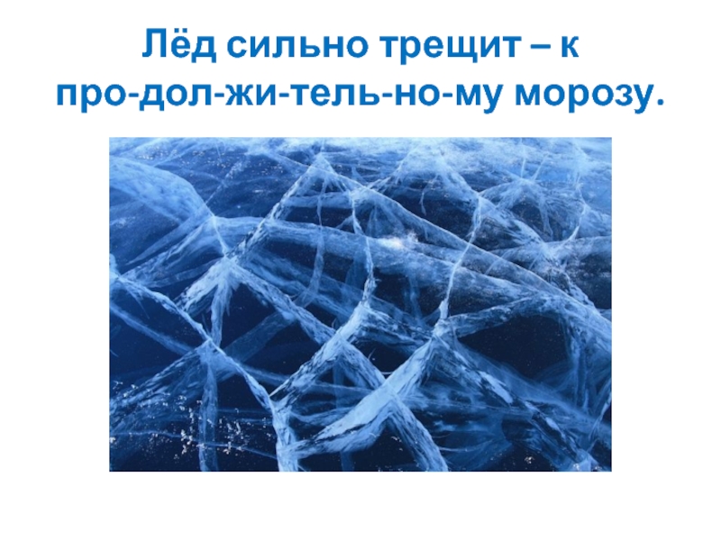 Слайд 5Лёд сильно трещит – к про-дол-жи-тель-но-му морозу.