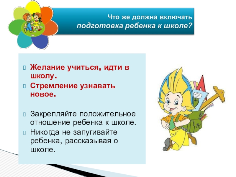 Умение писать, читать, считать, решать элементарные задачки, это лишь навыки, которым можно научить. Не подавляйте исследовательский интерес юного естествоиспытателя, тогда к моменту поступления в школу ему многое удастся постичь на собственном опыте. Учите ребенка самого искать ответы на свои бесконечные «почему», выстраивать причинно-следственные связи – одним словом, активно интересоваться окружающим миром.