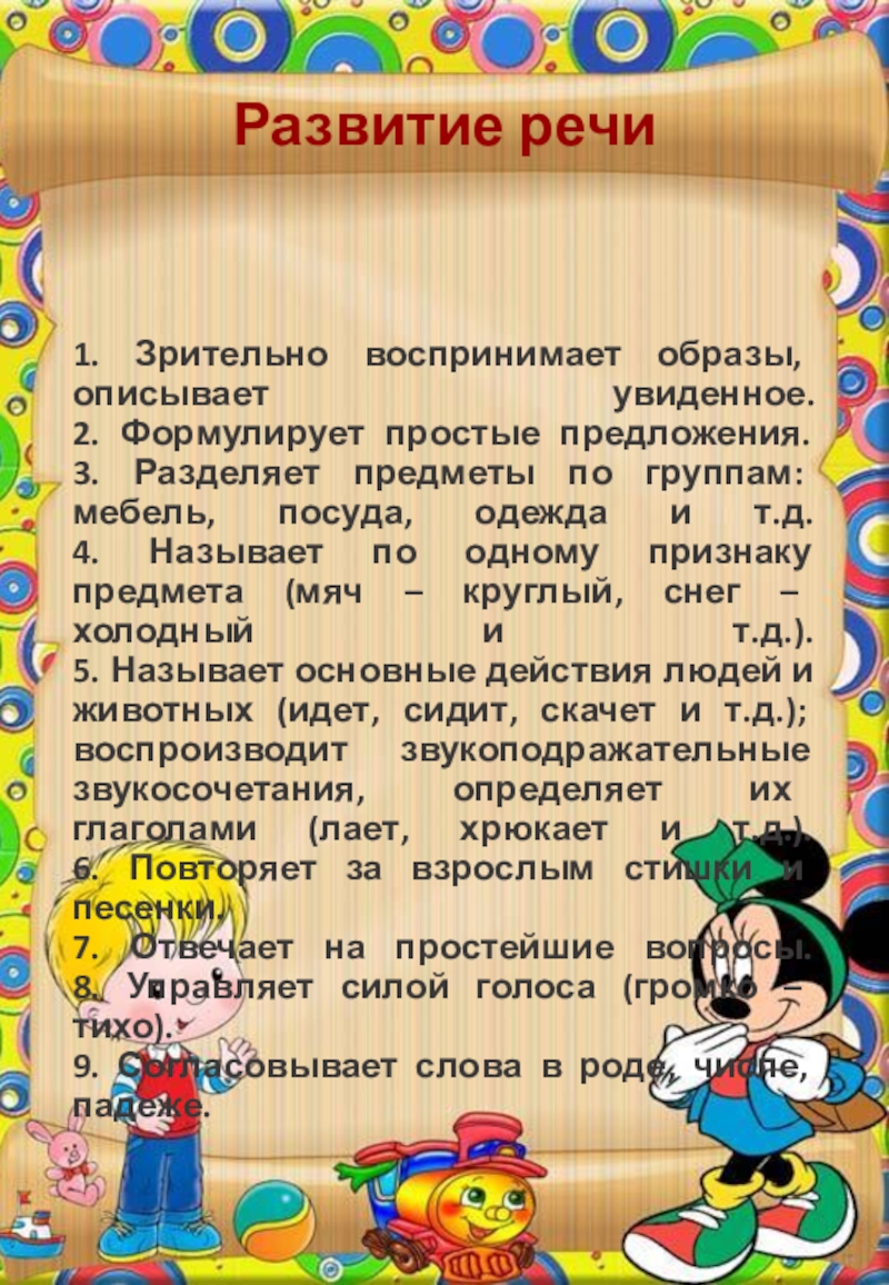 6. Запоминает 3-4 слова, произнесенные взрослым несколько раз.