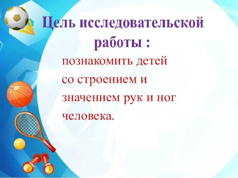 Слайд 2познакомить детей со строением и значением рук и ног человека.