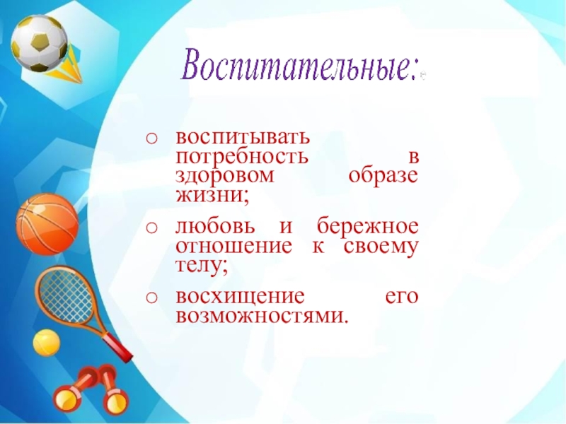 Слайд 6воспитывать потребность в здоровом образе жизни;