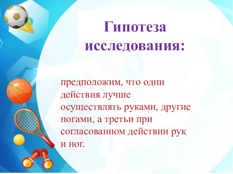 Гипотезаисследования: епредположим, что одни действия лучше осуществлять руками, другие ногами, а третьи при согласованном действии рук и