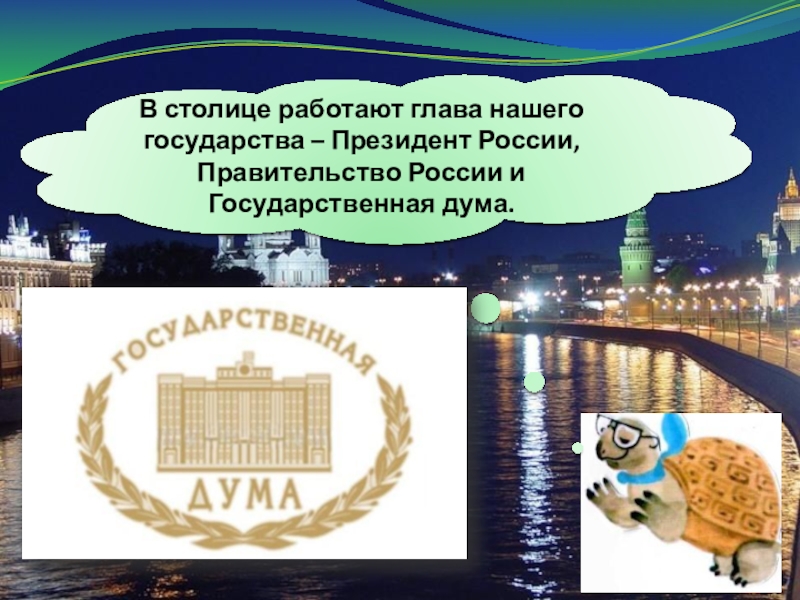 Слайд 5В столице работают глава нашего государства – Президент России, Правительство России