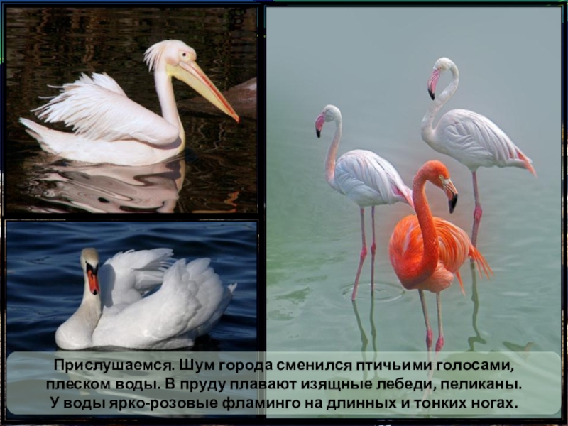 Слайд 17Прислушаемся. Шум города сменился птичьими голосами,