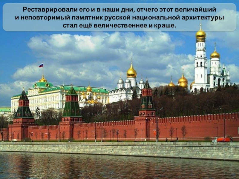 Слайд 12Реставрировали его и в наши дни, отчего этот величайший