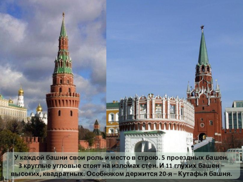 Слайд 14У каждой башни свои роль и место в строю. 5 проездных