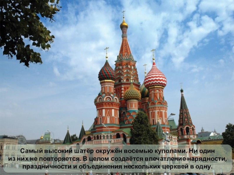 Слайд 34Центральный шатёр собирает вокруг себя восемь башенок