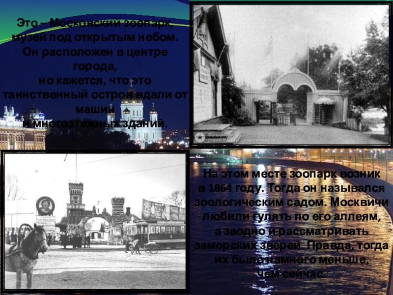 в 1864 году. Тогда он назывался зоологическим садом. Москвичи любили гулять по его аллеям,