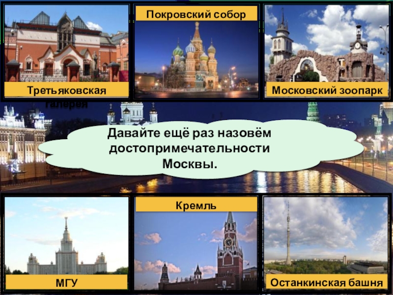 Слайд 35Давайте ещё раз назовём достопримечательности Москвы.