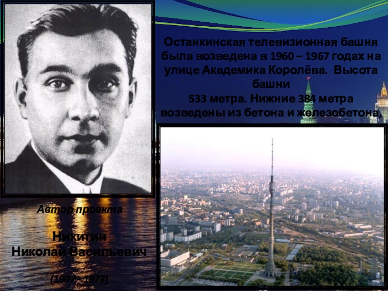 Слайд 26Останкинская телевизионная башня была возведена в 1960 – 1967 годах на
