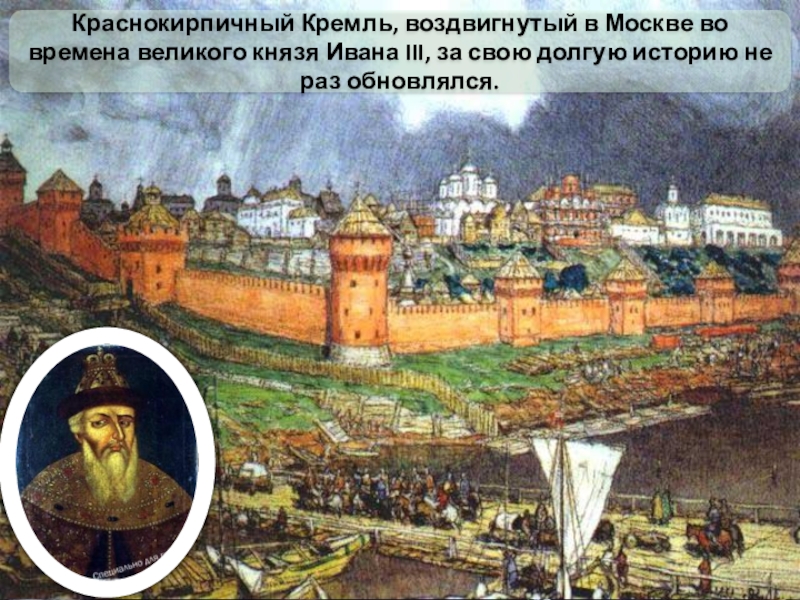 Слайд 11Краснокирпичный Кремль, воздвигнутый в Москве во времена великого князя Ивана III,