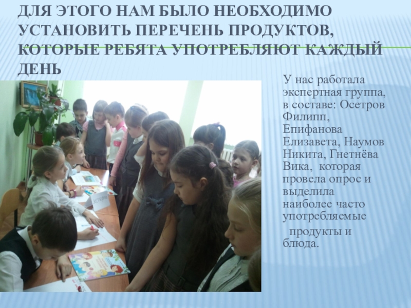 У нас работала экспертная группа, в составе: Осетров Филипп, Епифанова Елизавета, Наумов Никита, Гнетнёва Вика, которая провела опрос и выделила наиболее часто употребляемые