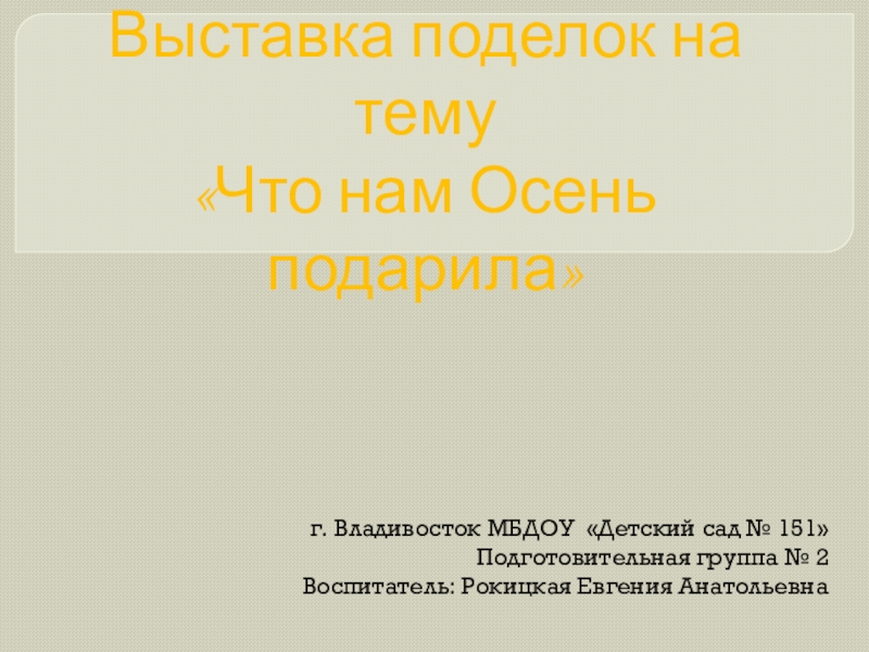 Воспитатель: Рокицкая Евгения Анатольевна