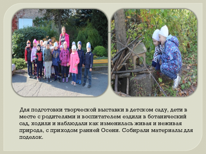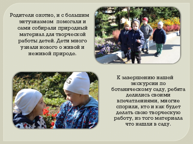 К завершению нашей экскурсии по ботаническому саду, ребята делились своими впечатлениями, многие спорили, кто и как будет делать свою творческую работу, из того материала что нашли в саду.