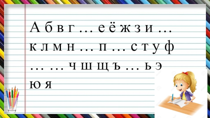 к л м н … п … с т у ф … … ч ш щ ъ … ь э ю я