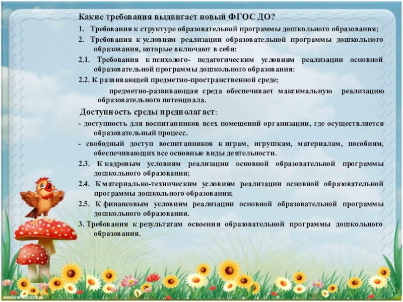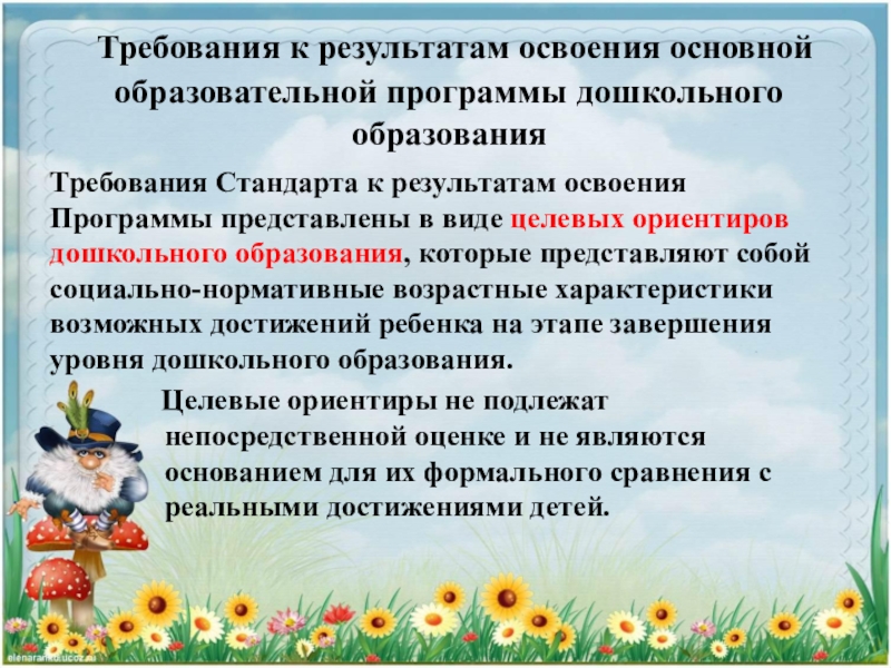 обеспечение государственных гарантий уровня и качества дошкольного образования на основе единства обязательных требований к условиям реализации образовательных программ дошкольного образования, их структуре и результатам их освоения;